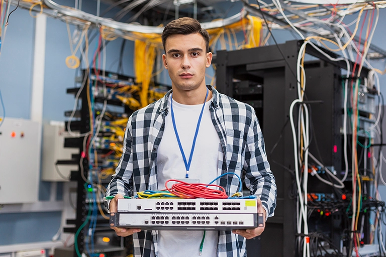 Uczestnik uczy się konfigurować routery i przełączniki Cisco, tworzyć VLAN-y, zarządzać ruchem sieciowym, wdrażać polityki bezpieczeństwa i monitorować pracę sieci. W ramach laboratoriów wykonuje symulacje w Cisco Packet Tracer, diagnozuje błędy sieciowe i projektuje topologie sieci korporacyjnych.